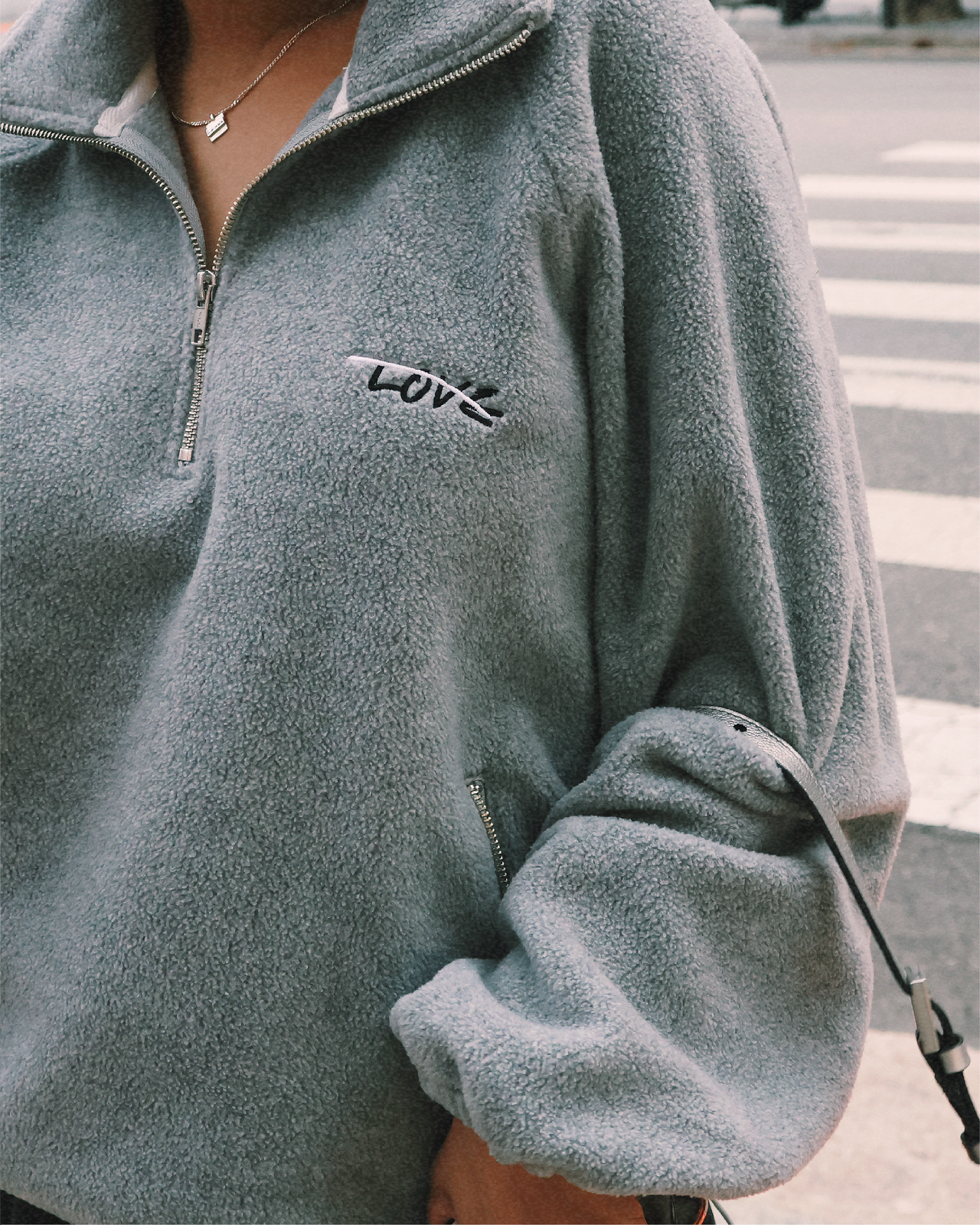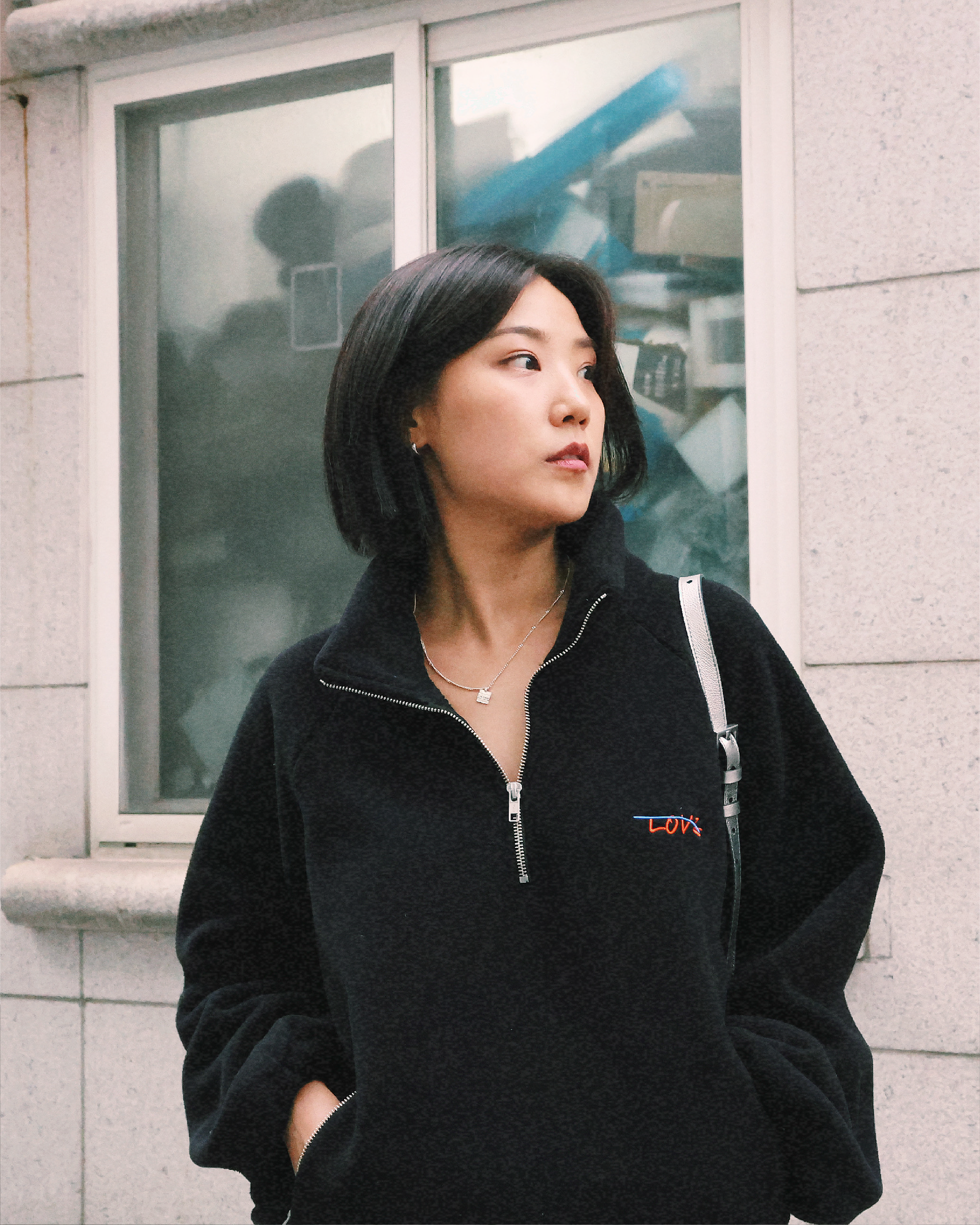 사랑의 모양 | LOVE XXX 그래픽이 집업 아노락으로 만들어졌습니다.