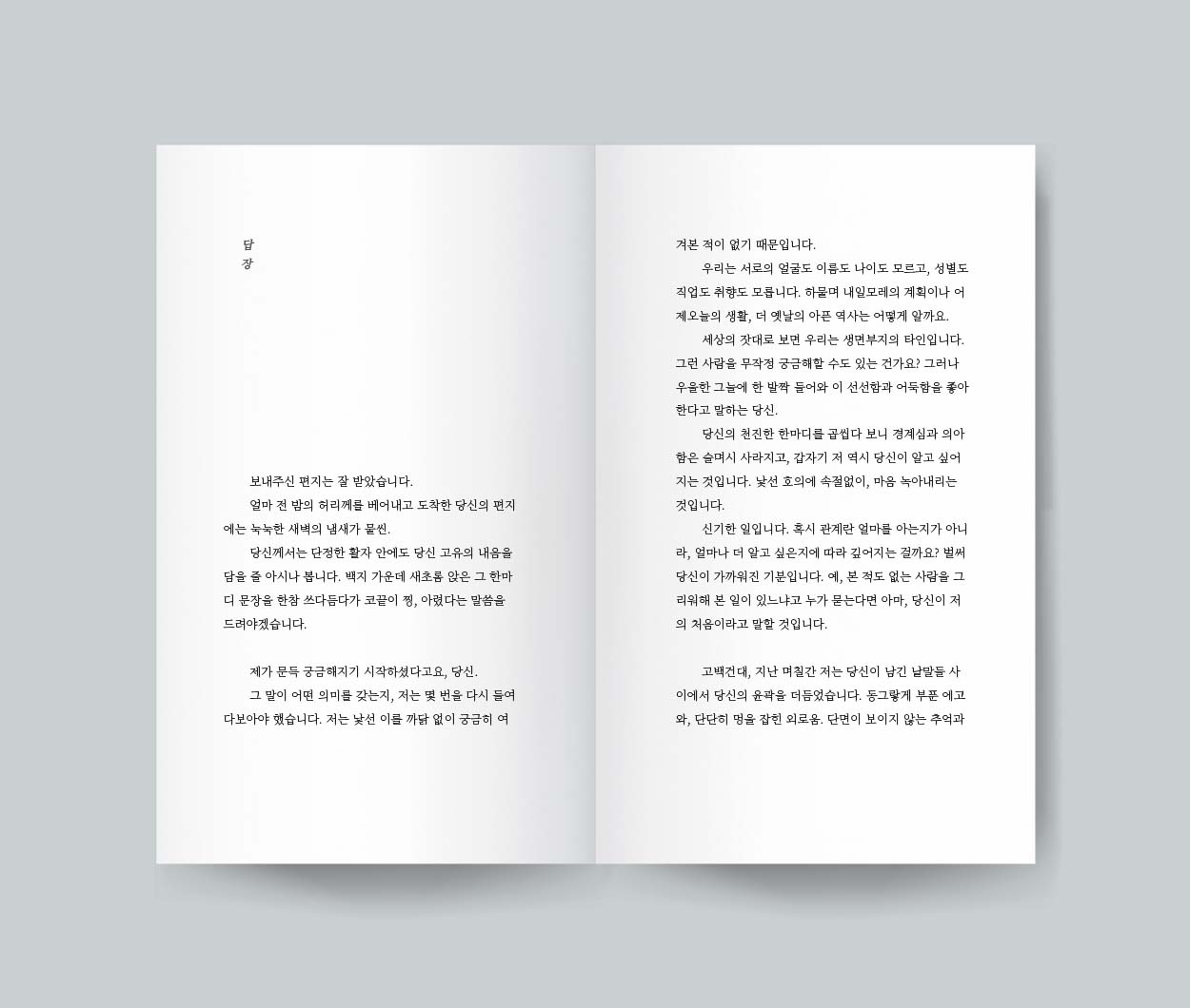 그 슬프지만 아름다운 감정들에 대해 여러 가상의 주인공들, 어쩌면 자기 자신을 투영한 사람들을 불러와 이야기한다.