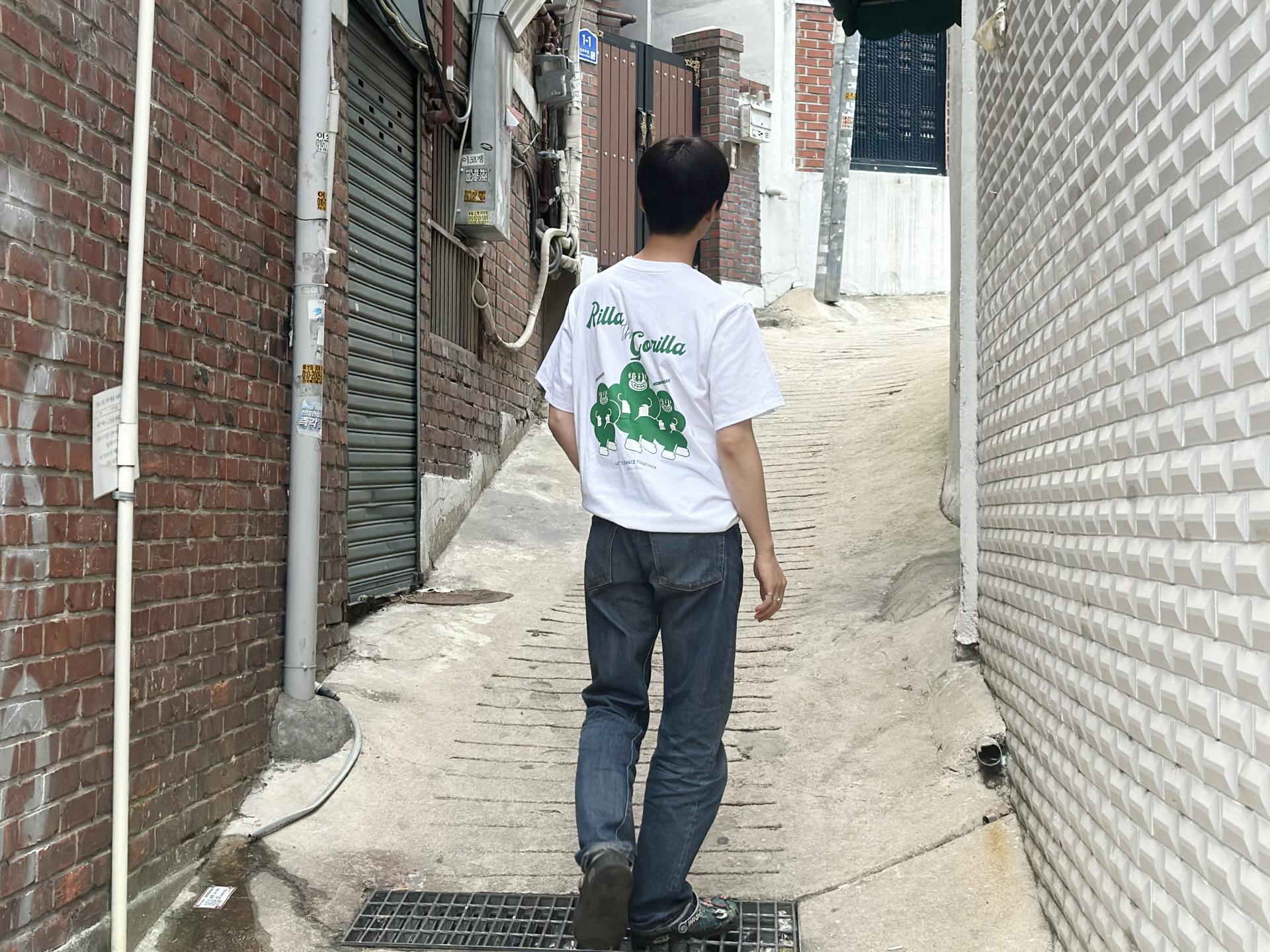 “마른 체형이지만 어깨가 넓은 편이고, 평소 티셔츠는 105 사이즈를 입어요.”