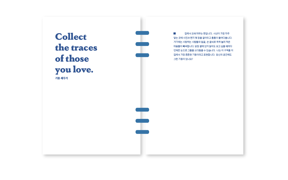 조각들을 모아 서랍에 쌓아두고 넘칠 때쯤 꺼내어 종이에 엮습니다.
